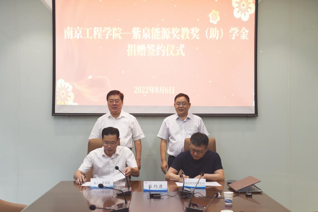 8月6日下午,紫泉能源奖教奖(助)学金签约仪式在凯发科创园206会议室举行。校党委书记史国君,我校电8913班校友、泰州校友会会长、紫泉能源董事长王育华出席签约仪式。党委常委、副院长张仰飞,紫泉能源副总经理李玮玮代表双方签署捐赠协议。