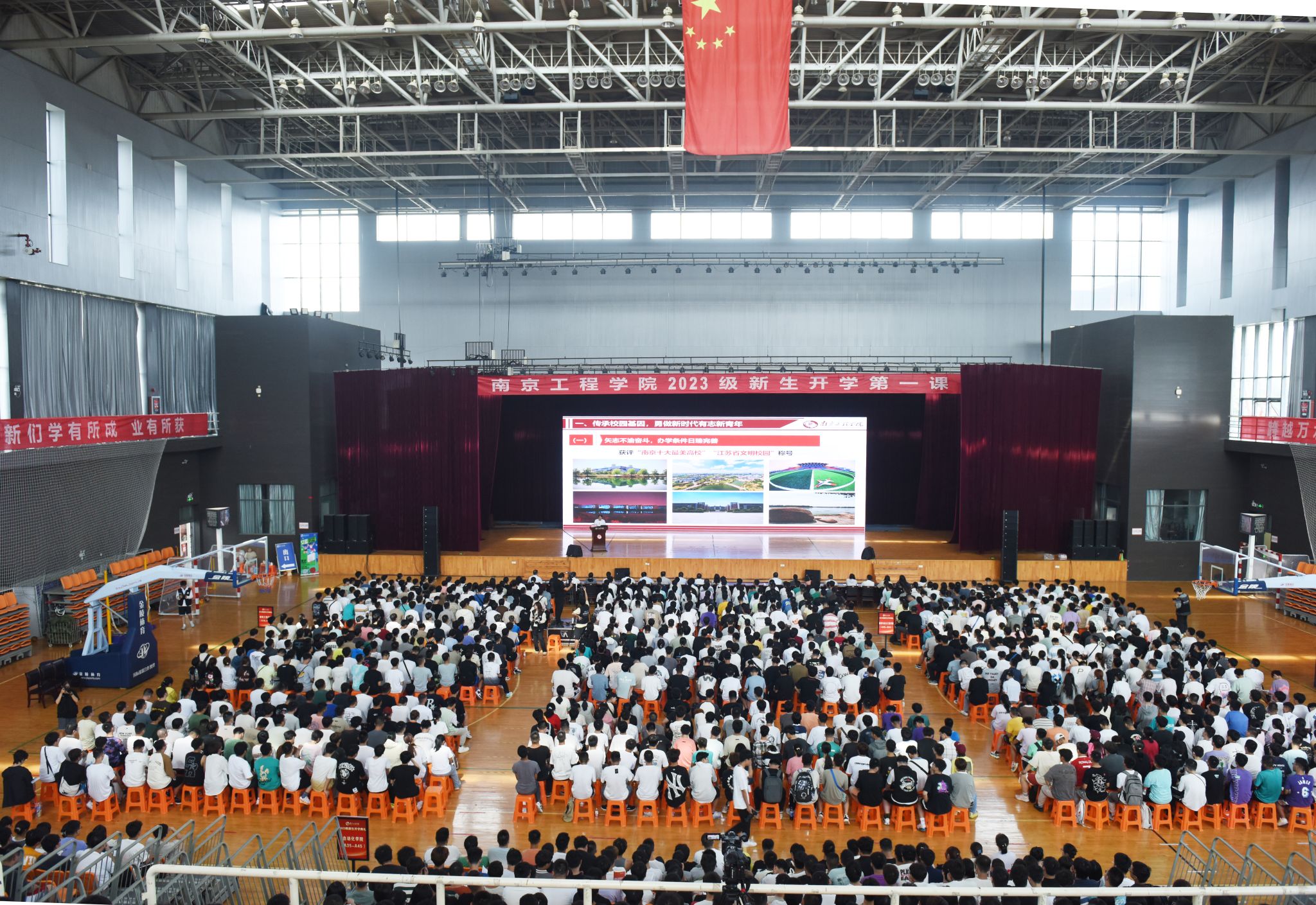 9月10日下午,校党委书记孙爱武以“担当复兴大任 成就精彩人生”为题,在天健苑·体育中心主馆为2023级新生讲授“开学第一课”,勉励大家传承校园基因、勇做新时代有志新青年,强化思想引领、勇做新时代有为新青年,主动担当作为、勇做新时代有责新青年。