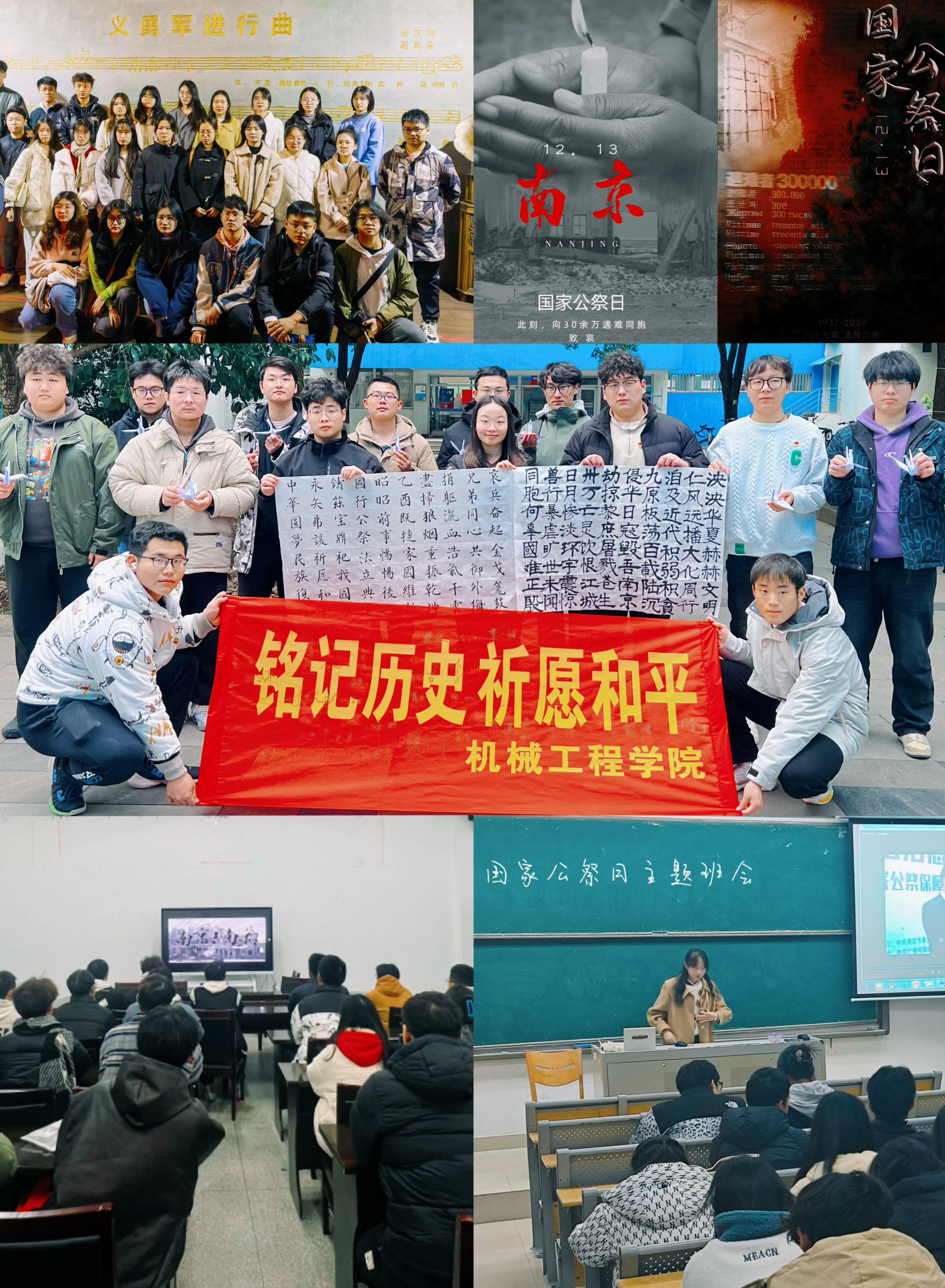 此外,凯发通过官方微信发布主题推送,号召全体南工程人为遇难同胞哀悼。各学院也相继开展主题班会、参观南京民间抗日战争博物馆、公益海报设计、红色观影等活动,为广大青年学子上了一堂生动的爱国主义课,起到了良好的教育效果。