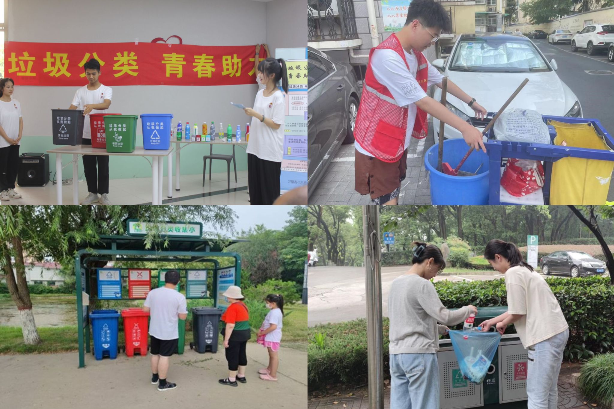垃圾分类促文明。志愿者们协助社区工作人员进行垃圾分类,并且以宣讲、发放环保手册等形式对社区居民进行科普活动,让社区居民也参与垃圾分类承诺活动中,呼吁大家自觉遵守、维护文明行为规范,爱护公共环境,养成良好的卫生习惯和健康的生活方式。