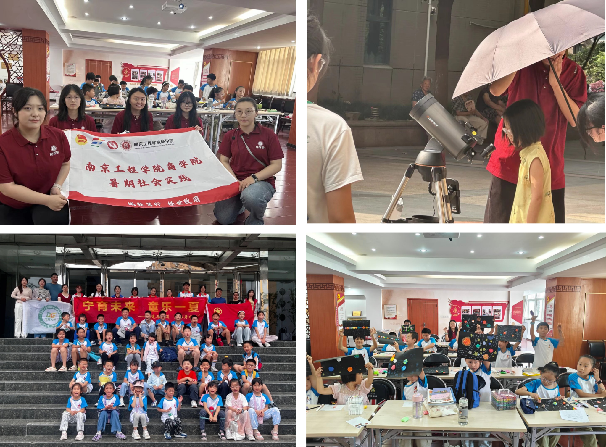 据了解,商学院其他实践团队也在开展青少年暑期教育活动。在溧阳市工人文化宫开设了思想引领、安全自护、科学探索、心理健康及军体拳训练的综合性课程;秦淮区门东社区的团队则通过“星球模型制作”等手工活动传授天文知识。这些多元化的暑期实践,为孩子们提供了安全、充实、快乐的假期体验,展现了商院学子服务社会、奉献青春的责任担当。